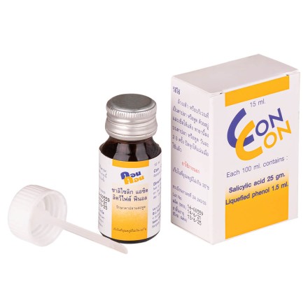 Раствор создан на основе салициловой кислоты из расчета 25 г кислоты на 100 мл раствора. Также средство содержит 1,5 мл Liquefied phenol (сжиженный фенол).